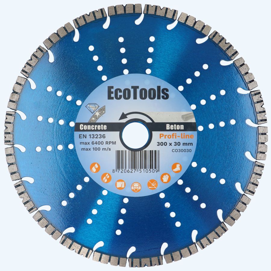 Om te zagen in beton, tegels of abrasieve steensoorten gebruik je een diamantschijf die aansluit bij jouw klus. De diamantschijven van EcoTools zijn zowel droog als watergekoeld te gebruiken, waarbij waterkoeling de levensduur significant kan verlengen. Om bijvoorbeeld beton te ontbramen, kan je ook kiezen uit diverse maten diamant komschijven. Check snel de pagina met diamantschijven om het beste diamant zaagblad voor jouw klus te vinden.